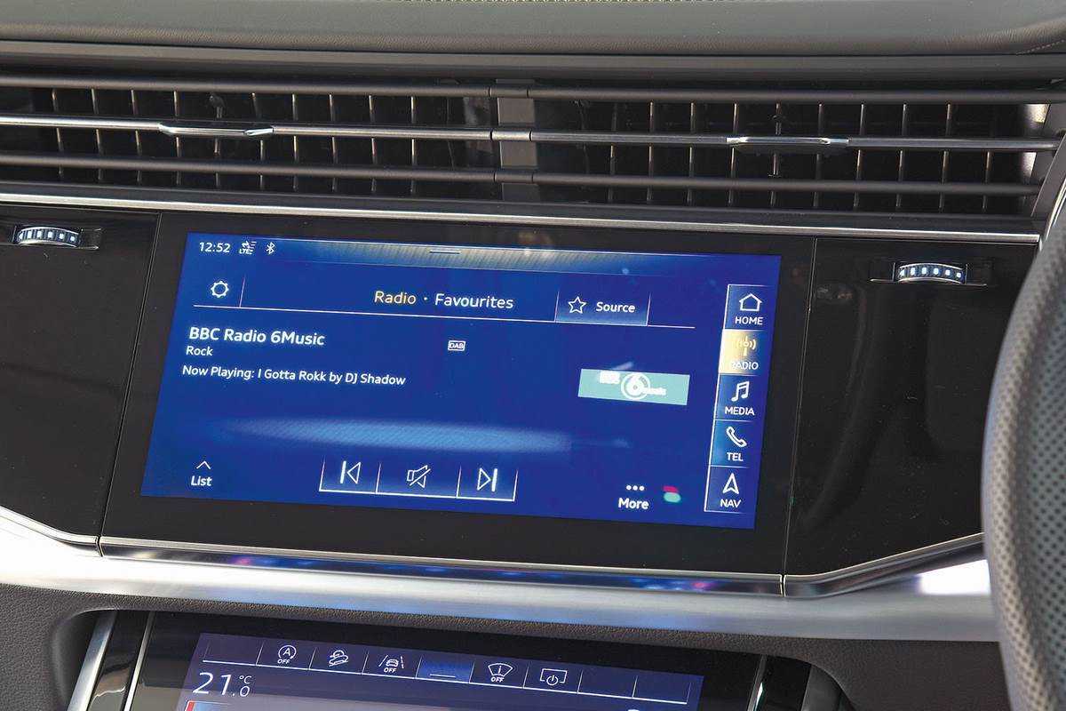 «Веларовские» сиденья комфортнее и лучше подходят для дальних поездок, тогда как кресла «Кю-восьмого» располагают более развитой боковой поддержкой. Кожаная отделка положена «Рейндж Роверу» (в версии R-Dynamic HSE) по умолчанию, но салон германского автомобиля выглядит роскошнее, тщательнее собран и выигрывает в качестве материалов. Сенсорные дисплеи мультимедийных систем испытуемых кроссоверов сравнимы по размерам (10,1 дюйма у Q8 и 10 дюймов у «Велара») и выдают четкую картинку. Вместе с тем система «Ауди» более логична и отзывчива в управлении, а также интегрируется с Apple CarPlay и Android Auto.