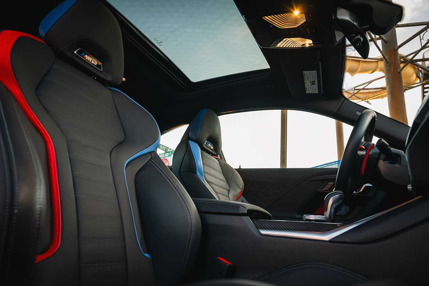 В ковшеобразных сиденьях M Carbon, которые также входят в список опций, в конструктивных элементах подушки и спинки сиденья используется пластик, армированный углеродным волокном (CFRP). Вырезы в боковых подголовниках и под подголовниками, позволяют снизить вес автомобиля примерно на 10,8 кг.