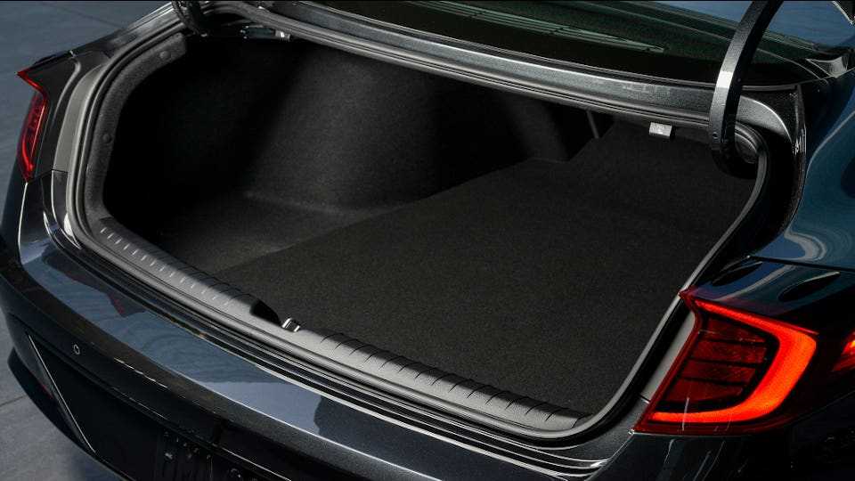 The Sonata’s 16 cubic feet of trunk space trails slightly behind the Honda Accord’s segment-leading 16.7 cubes. Like the competition, the rear seats split in a 60/40 fashion and fold flat, allowing room for long items.