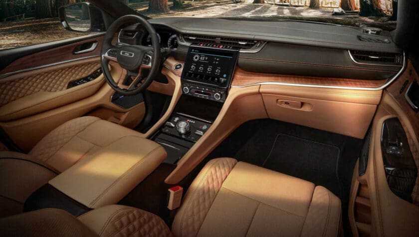 На вершине списка расположилась версия Summit Reserve с 21-дюймовыми дисками (такие большие колеса для Grand Cherokee предлагаются впервые), «музыкой» McIntosh с 19 динамиками и мультимедиасистемой Uconnect 5 с тремя экранами диагональю 10,1 дюйма и двумя 10,25-дюймовыми дисплеями, а салон отделан кожей Palermo в сочетании с ореховым деревом. Список можно дополнить системой камер кругового обзора, автопилотом второго уровня и системой расширенного контроля слепых зон.