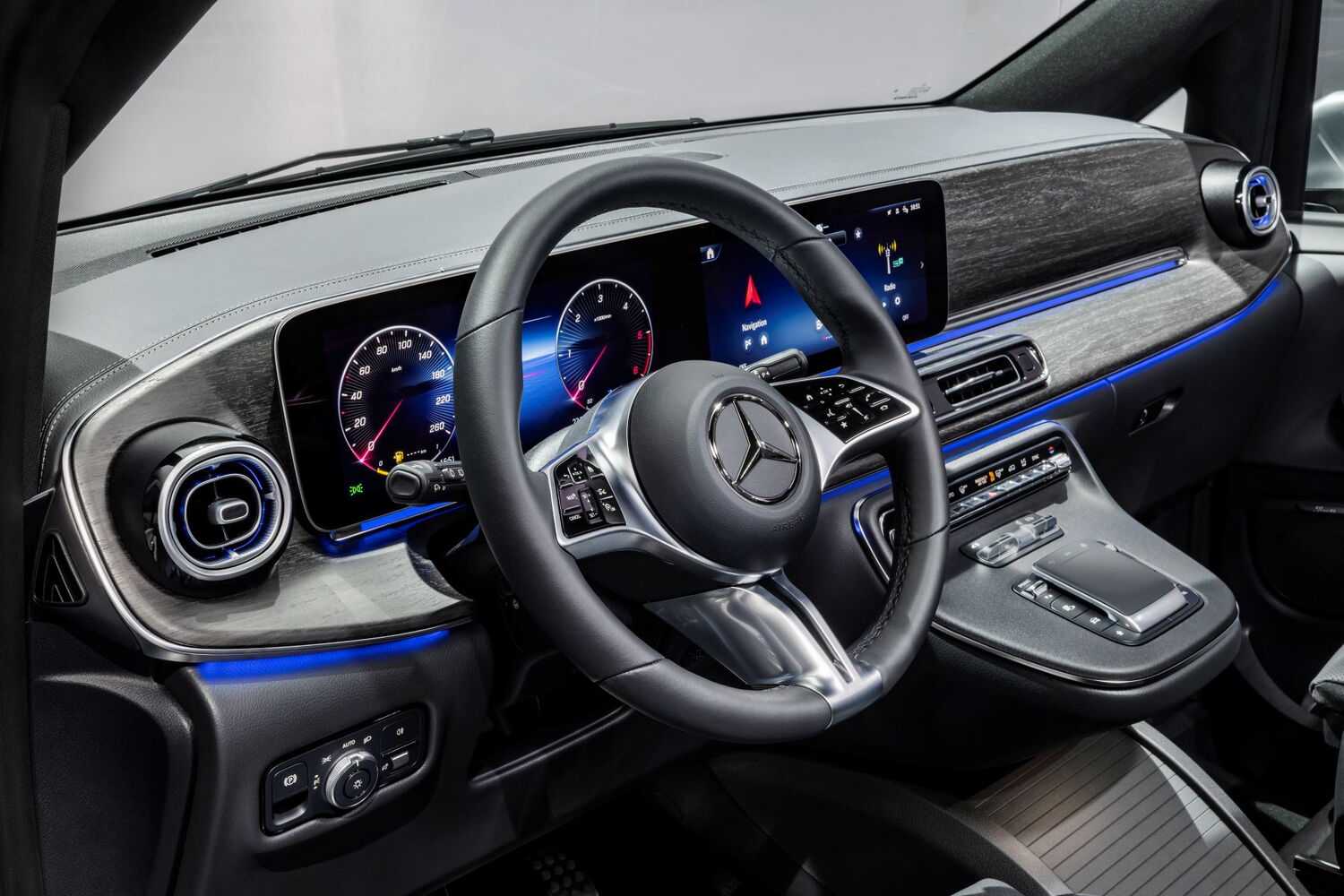 В салоне Mercedes-Benz V-класса будет 12,3-дюймовая цифровая комбинация приборов и информационно-развлекательная система MBUX с сенсорным экраном. Система MBUX предоставляет доступ к различным функциям, таким как потоковая передача музыки, навигация с дополненной реальностью и голосовой помощник, который отзывается на команду «Привет, Мерседес».