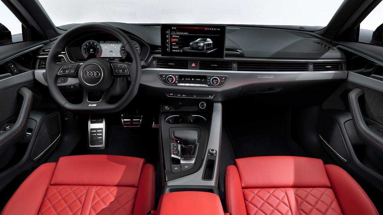 Изменения в салоне седана и универсала Audi A4 затрагивают в основном электронно-техническое оснащение. Главная новация – это продвинутый мультимедийный комплекс MIB 3 с 10.1-дюймовым тачскрином, голосовым управлением, точкой доступа Wi-Fi, массой полезных онлайн-сервисов и навигацией. Благодаря появлению сенсорного дисплея с акустической обратной связью (касания сопровождаются щелчками) исчезла потребность в контроллере MMI на центральном тоннеле, место которого занял удобный отсек для мелочевки. Новая медиасистема позволяет настроить доступ к автомобилю через мобильное приложение myAudi, поэтому следить за состоянием машины, а также управлять блокировкой/разблокировкой ее замков теперь можно прямо со смартфона.
