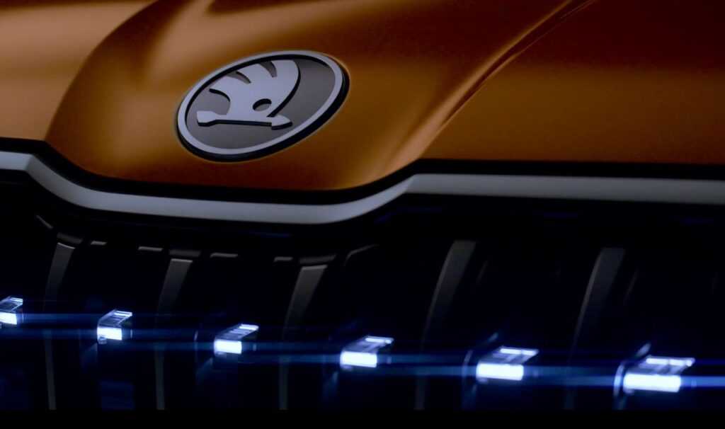 Through an official teaser, Skoda has also confirmed LEDs on the grille of the new Kodiaq. Image: Skoda