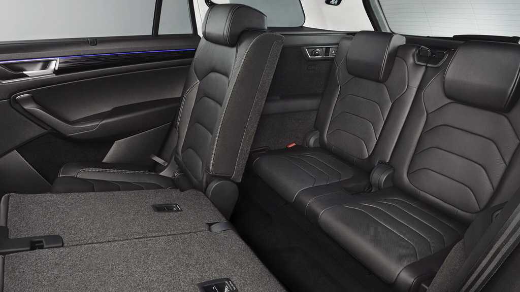 Багажник нового Шкода Кодиак организован на зависть одноклассникам. Объем грузового отсека при пятиместном исполнении кроссовера составляет 650 литров, при семиместном – 270 литров. После складывания спинок задних сидений образуется абсолютно ровная погрузочная площадка, а вместительность багажного отделения увеличивается до 2065 литров (в случае 7 мест – 2005 литров). Интересно, что на переднем ряду справа опционально можно установить кресло со складывающейся спинкой, что позволит перевозить весьма габаритные длинномеры.