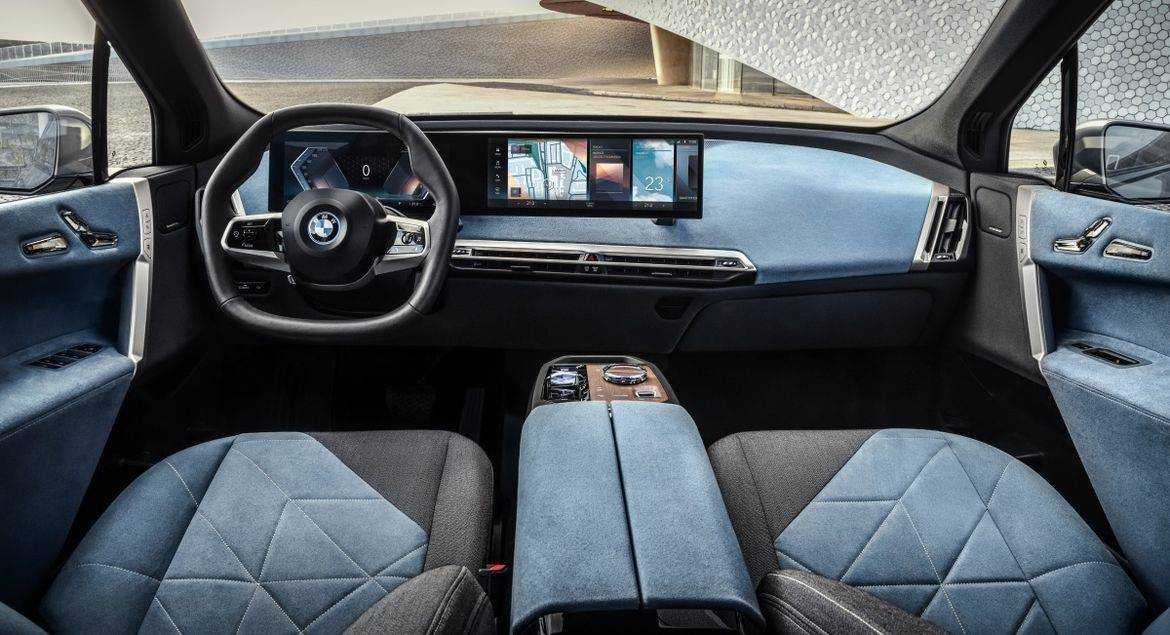 В салоне нового iX за счет конструктивной особенности электроплатформы отсутствует центральный тоннель (что благотворно повлияло на запас пространства для ног пассажиров), а на центральной консоли – так называемая «борода». Зато в ее основании разместилась площадка для хранения смартфона с индукционной зарядкой, гнездо на 12V и два разъема типа USB-C. Цифровая приборная панель электромобиля диагональю 12,3 дюйма и экран мультимедийной системы размером 14,9 дюйма по диагонали объединены в один изогнутый дисплей BMW Curved Display. Главным же стилистическим элементом салона, притягивающим взгляд, является руль шестиугольной формы.
