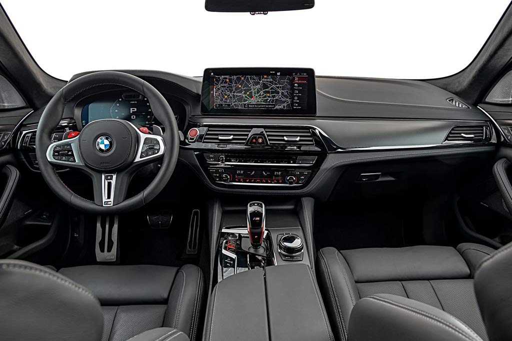 Внутри «горячего» седана, как и внутри обычной пятерки, появилась виртуальная приборная панель, а центральный 10.25-дюймовый дисплей замене на более крупный тачскрин диаметром 12.3”.