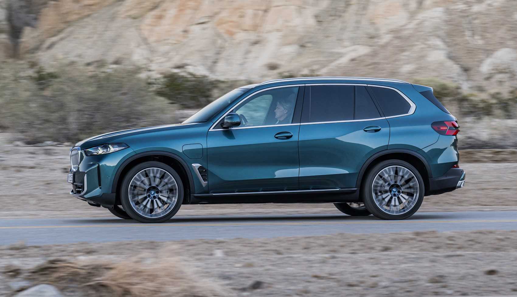 - БМВ Х5 xDrive 50e: заменил собой прошлый xDrive45e. Силовая установка подключаемого гибрида состоит из бензинового 3-литрового турбодвигателя на 313 л. с. (286 сил у прошлой версии) и нового электромотора с увеличенной со 113 до 197 сил мощностью. В итоге суммарно система выдаёт 490 л. с. и 719 Нм крутящего момента, и это значительное улучшение по сравнению с прошлыми показателями (394 л. с. и 612 Нм). До первой «сотни» теперь кроссовер разгоняется за 4,8 секунды, максимальная скорость — 250 км/ч. Аккумулятор ёмкостью 29,5 кВт/ч позволяет проезжать на чистой электротяге 94-110 км. Мощность домашнего зарядного устройства повышена до 7,4 кВт (с 3,7 кВт), в итоге время зарядки сократилось до 4,5 часов.