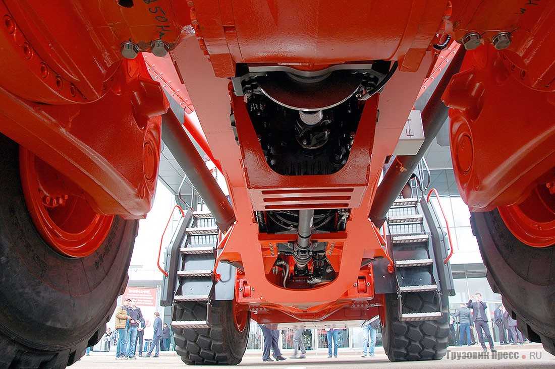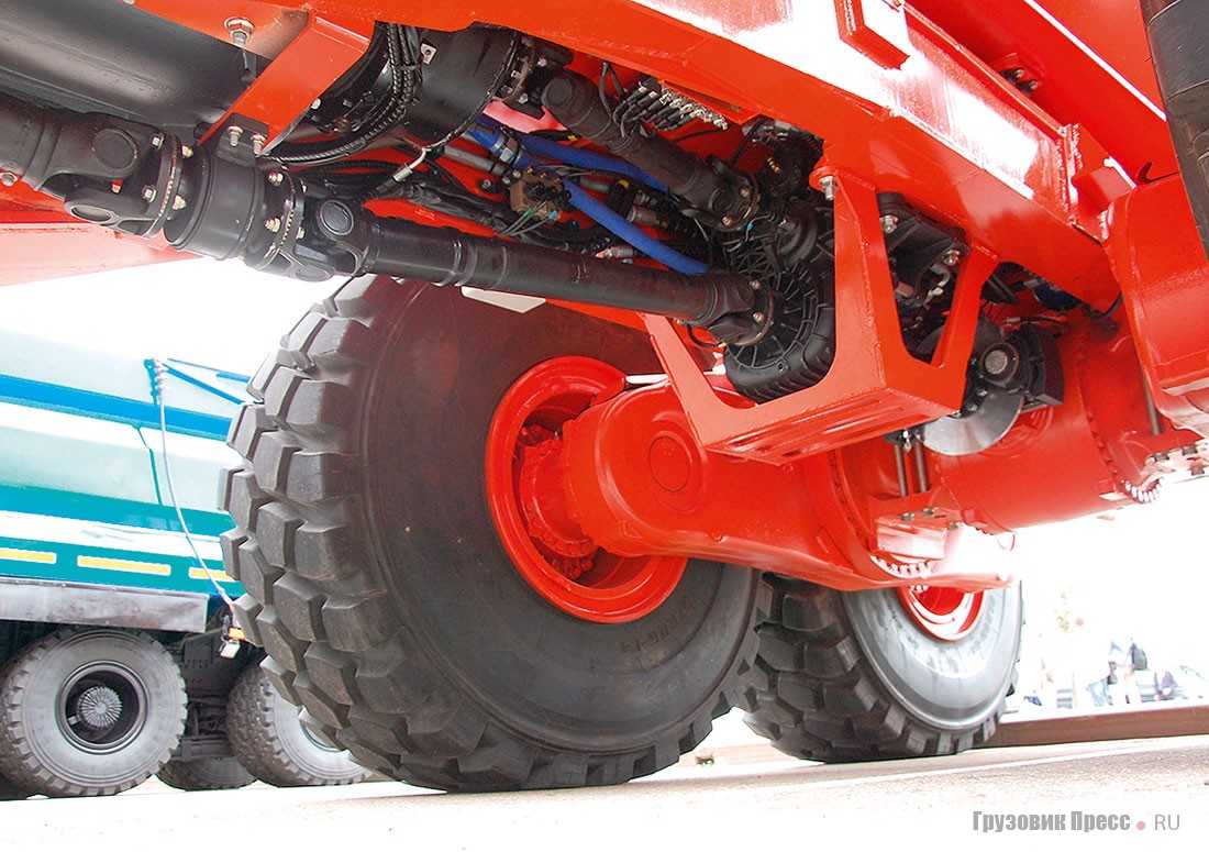 Из-за ширины в 3,43 м и превышения разрешённой осевой нагрузки самосвал не может передвигаться по дорогам общего пользования, если не оформлен допуск или трасса не является смежной технологической дорогой. Допустимую высоту (3,94 м) конструкторы выдержали. Длина машины в транспортном состоянии составляет 10,12 м, что вполне соответствует американским и европейским аналогам. Поворот самосвала осуществляется изменением угла передней полурамы относительно задней. Внешний радиус поворота у машины таких габаритов совсем небольшой – 8,9 метра. Дорожный просвет более чем впечатляющий – 517 мм.