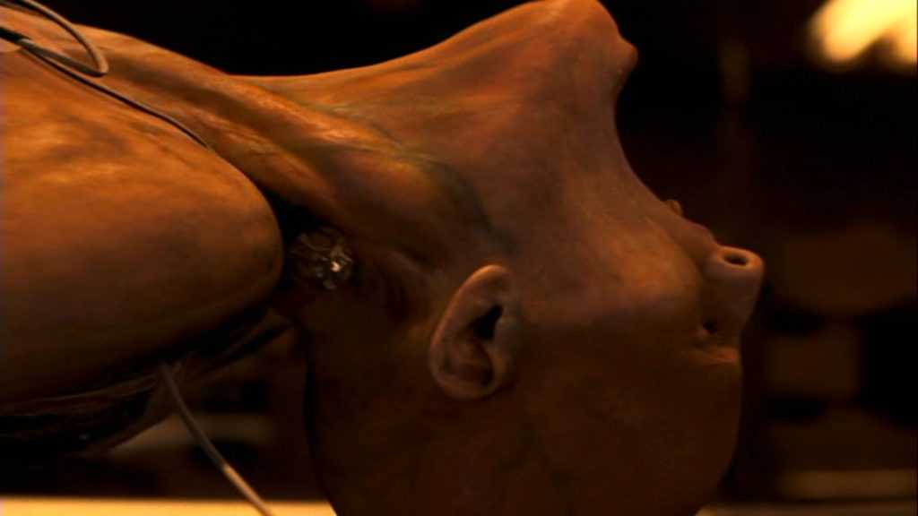 У фильма есть две концовки. В первой из них он показывает Анне лабораторию, где содержится существо для экспериментов, возит ее по некоторым местам в городе. В ходе этого ему в голову приходит идея охладить вакцину и таким образом сделать ее действенной.