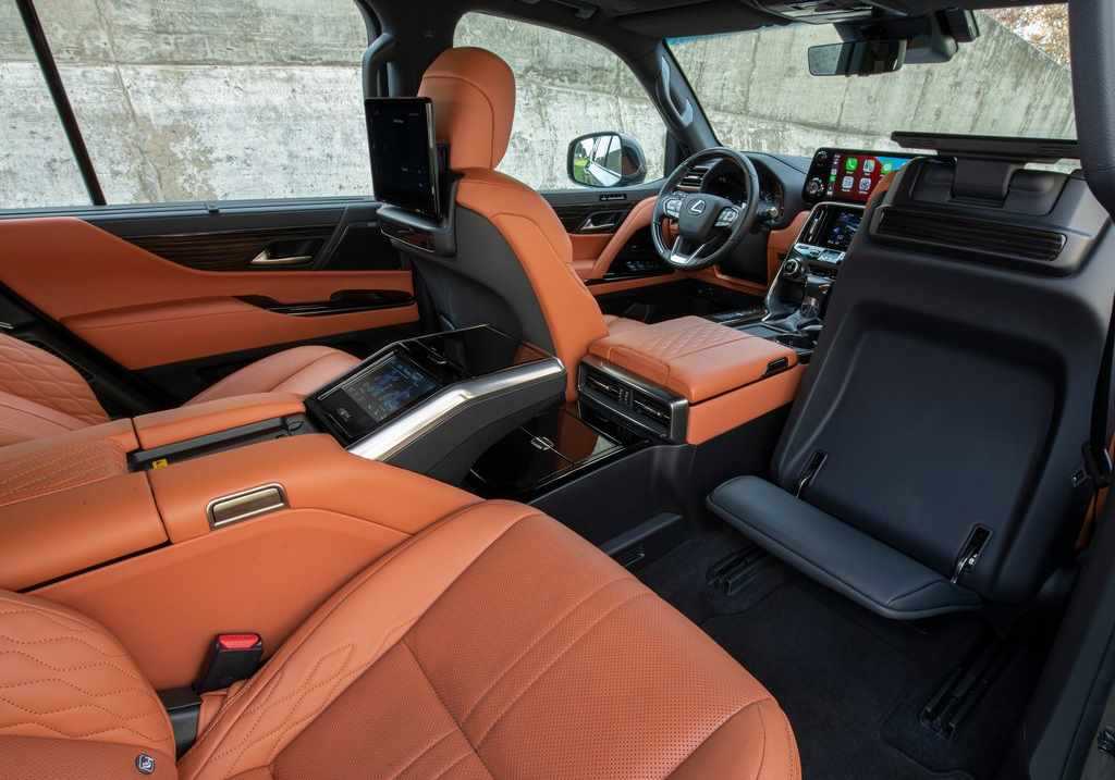 Новый Lexus LX в комплектации Luxury дополнительно получил люк в крыше, дополнительный экран в салонном зеркале заднего вида, проекционный дисплей, колеса диаметром 22 дюйма.