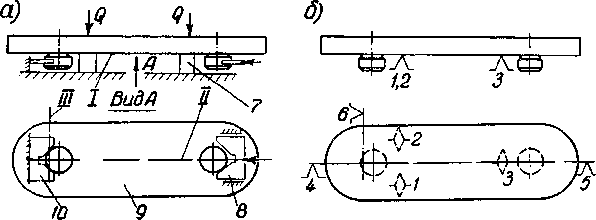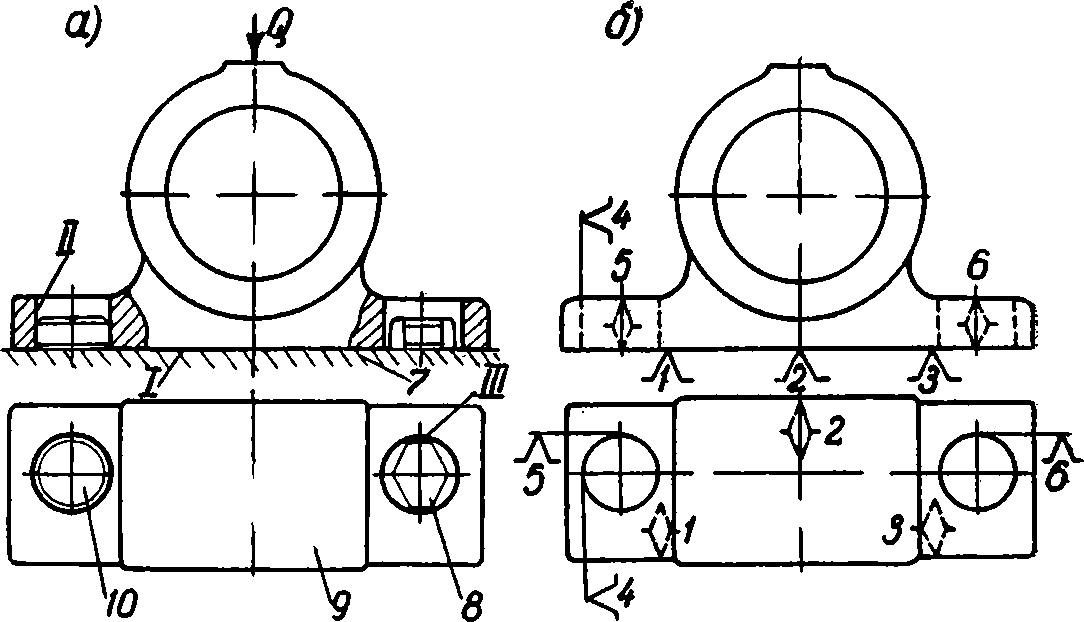 Примечание. На теоретических схемах базирования арабскими цифрами 1-6 обозначены опорные точки.