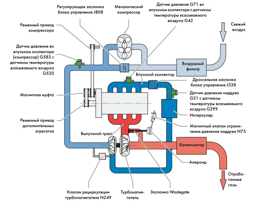 Классификация по способу нагнетания воздуха в камеры сгорания двигателей TSI: