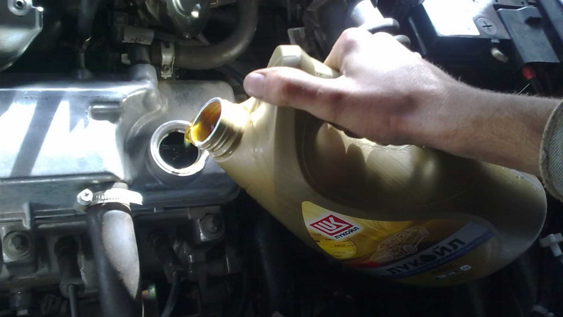 - Через наливную горловину заливают 3,2 литра масла (для всех двигателей).