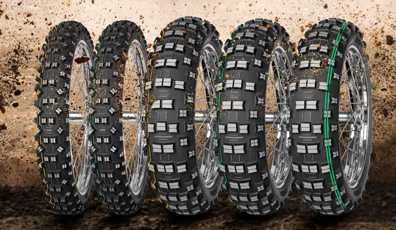 В отличие от кроссовых дисциплин, эндуро-маршруты предполагают не только всевозможные кочки с резкими спусками-подъёмами, но и большее разнообразие грунта под колёсами. Камни, грязевые участки, брёвна, заводи и так далее — в общем, всё как мы любим. Производители это учли, поэтому моторезина для эндуро будет отличаться от кроссовой составом компаунда и рисунком протектора.