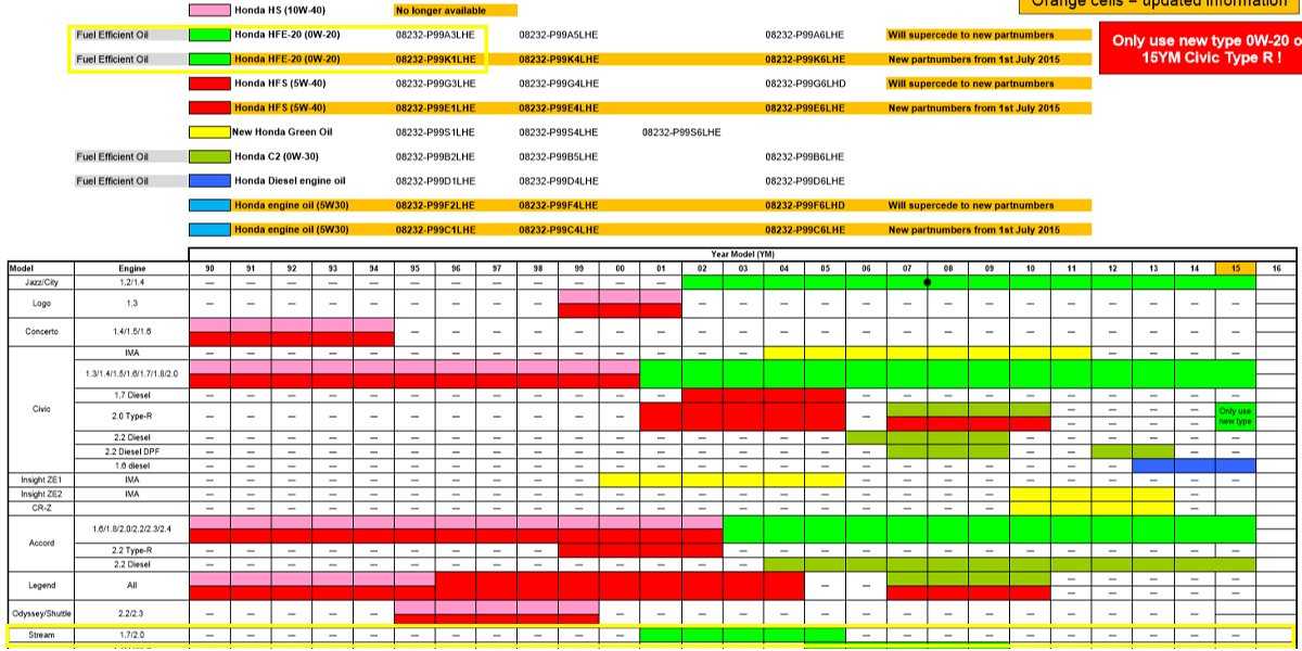 По вязкости (SAE) в Хонда советуют отдавать предпочтение маслам 0W-20. Если пробег ТС превышает 100 тыс. км, то хорошим выбором будут всесезонки 5W-30 и 5W-40.