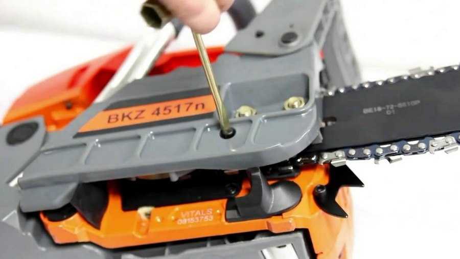 Как установить шину и цепь на бензопилу и отрегулировать натяжение