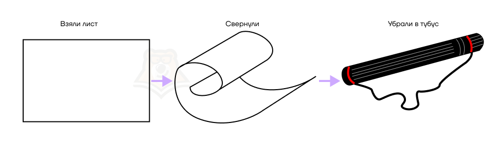 Это также легко увидеть, если вспомнить художников с тубусами. Тубус имеет форму цилиндра, и свернутый прямоугольный лист принимает такую же форму.