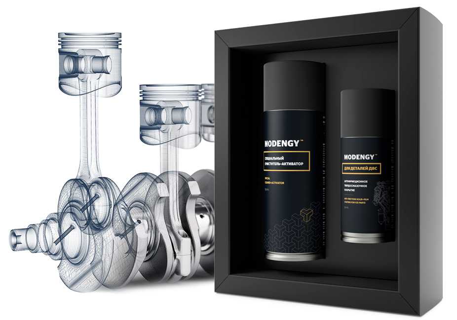 MODENGY Для деталей ДВС имеет практичную аэрозольную упаковку с оптимально настроенными параметрами распыления, поэтому наносится на юбки поршней легко, быстро и равномерно.