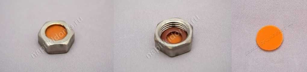 Берем старый шланг от душа или гибкой подводки и снимаем с него гайки. Комплектуем фторопластовой прокладкой и силиконовой прокладкой. Прокладку можно взять из пивной пробки. Остается все собрать. Правда, от оригинала это будет отличаться шайбой с проточкой под мембрану. Толщина мембраны – 1 мм, а проточки – 1,3 мм, при аккуратном монтаже работать будет.
