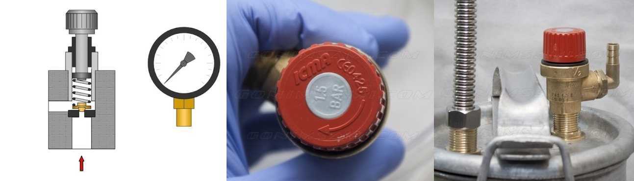 Как правило для этих систем аварийным считается давление выше 1,5-8 бар (150-800 кПа). Для самогоноварения это совсем запредельные значения. Принцип их работы прост, но даже замена пружин на менее жесткие часто не дает нужного результата, так как клапан просто перестает герметично прижиматься к седлу.