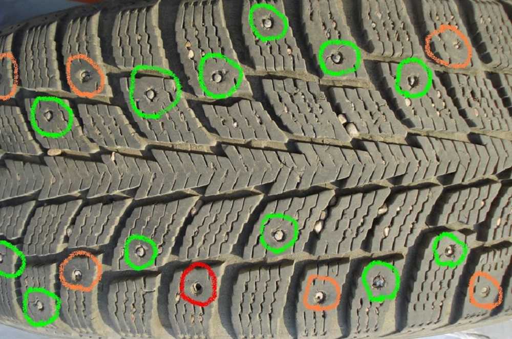 Если при производстве шипы прочно заняли свои гнезда, что их не сдвинешь даже хваткой бультерьера, то в чём причина их потери? Первая причина – естественный износ. Постоянное соприкосновение с дорожным покрытием стачивает их. При вращении колеса они вдавливаются вглубь посадочных мест и постепенно выходят с противоположной стороны.