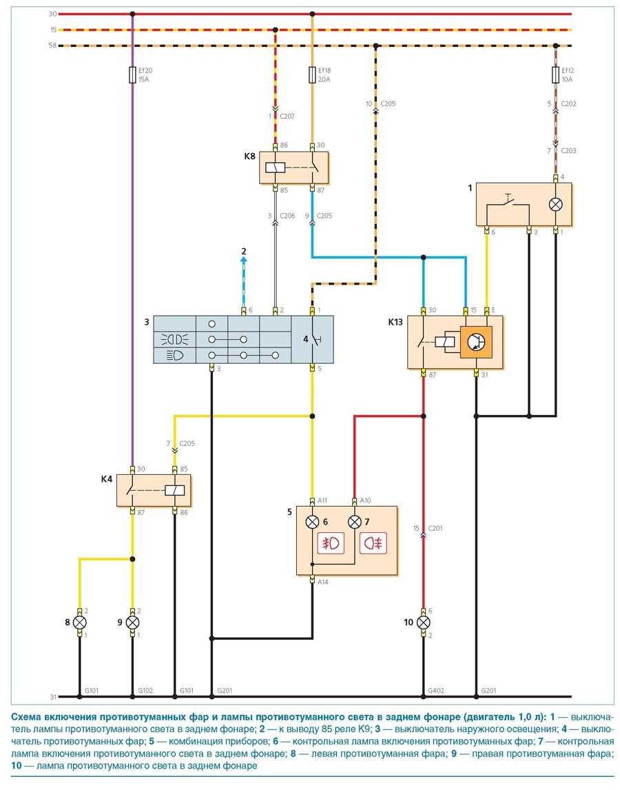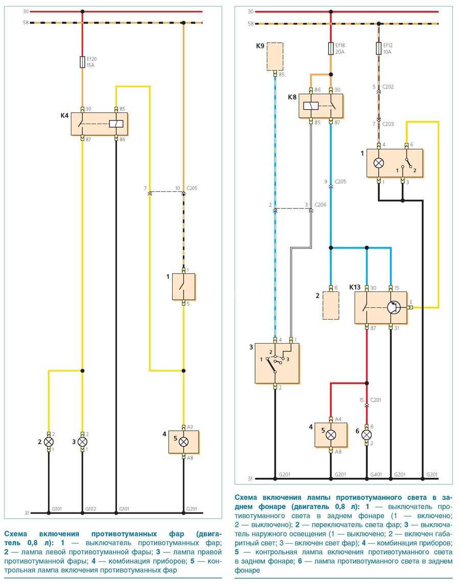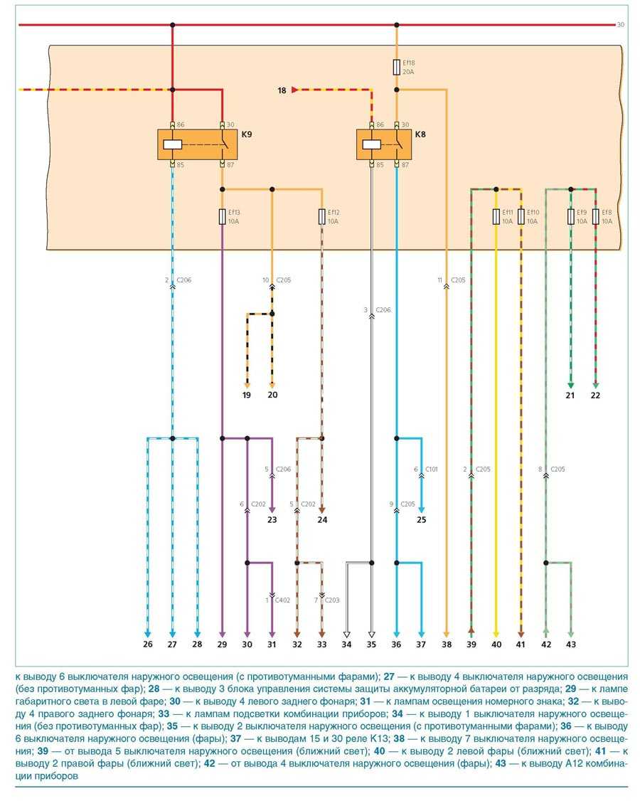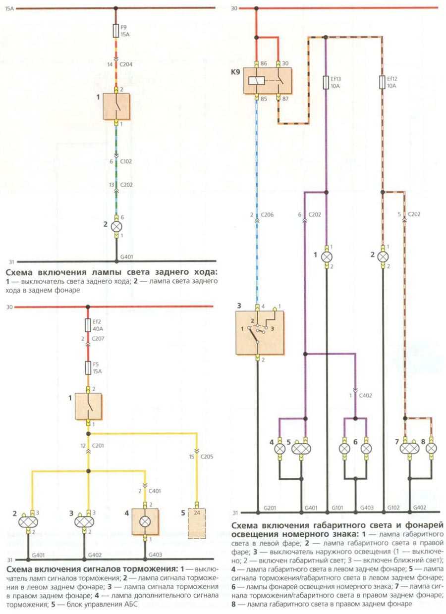 Схемы освещения задней части автомобиля