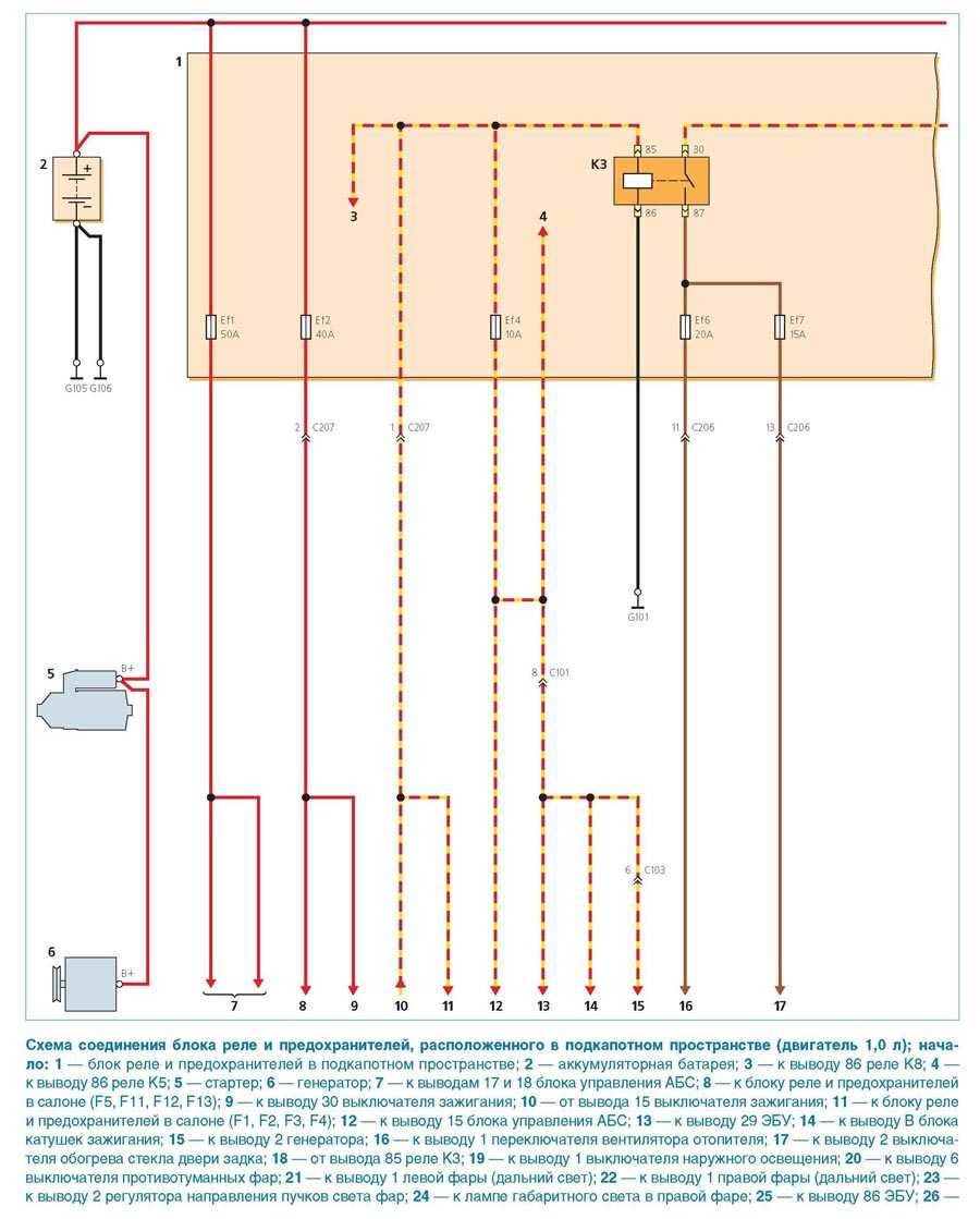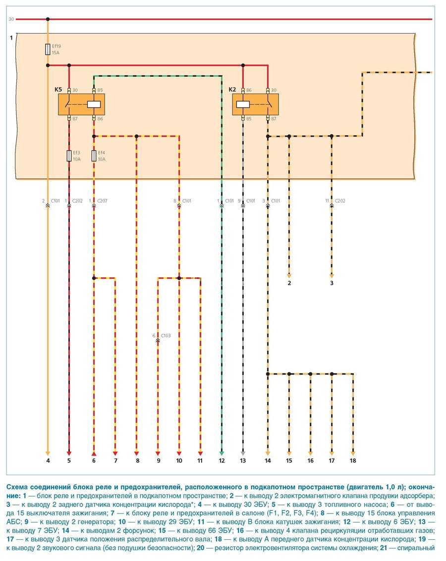 - Схема реле и предохранителей, расположенных в подкапотном пространстве (начало)