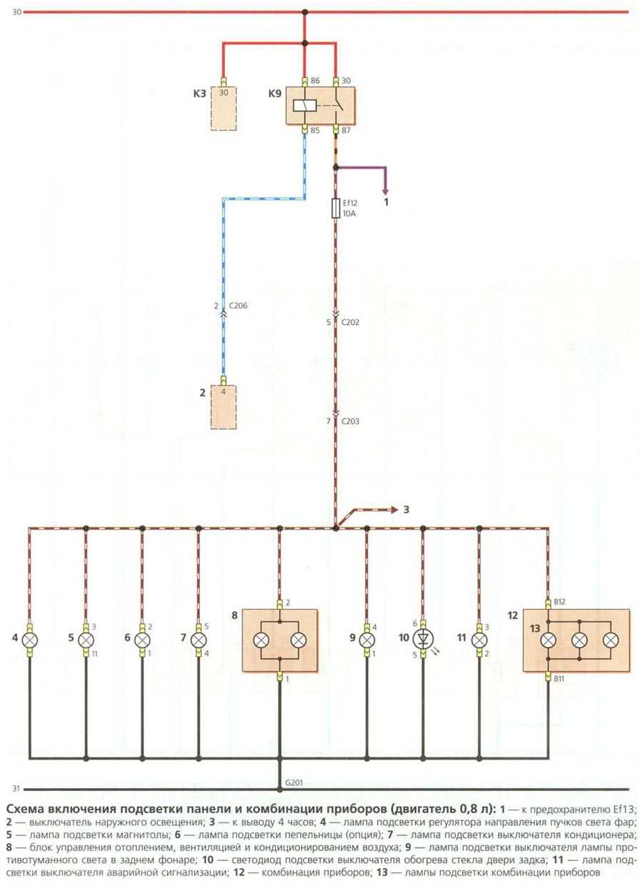 Подсветка панели приборов. (двигатель 0,8л)
