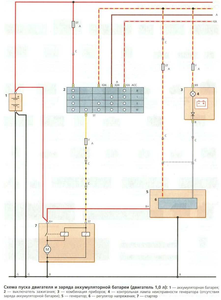 Схема пуска и заряда (двигатель 1,0л)