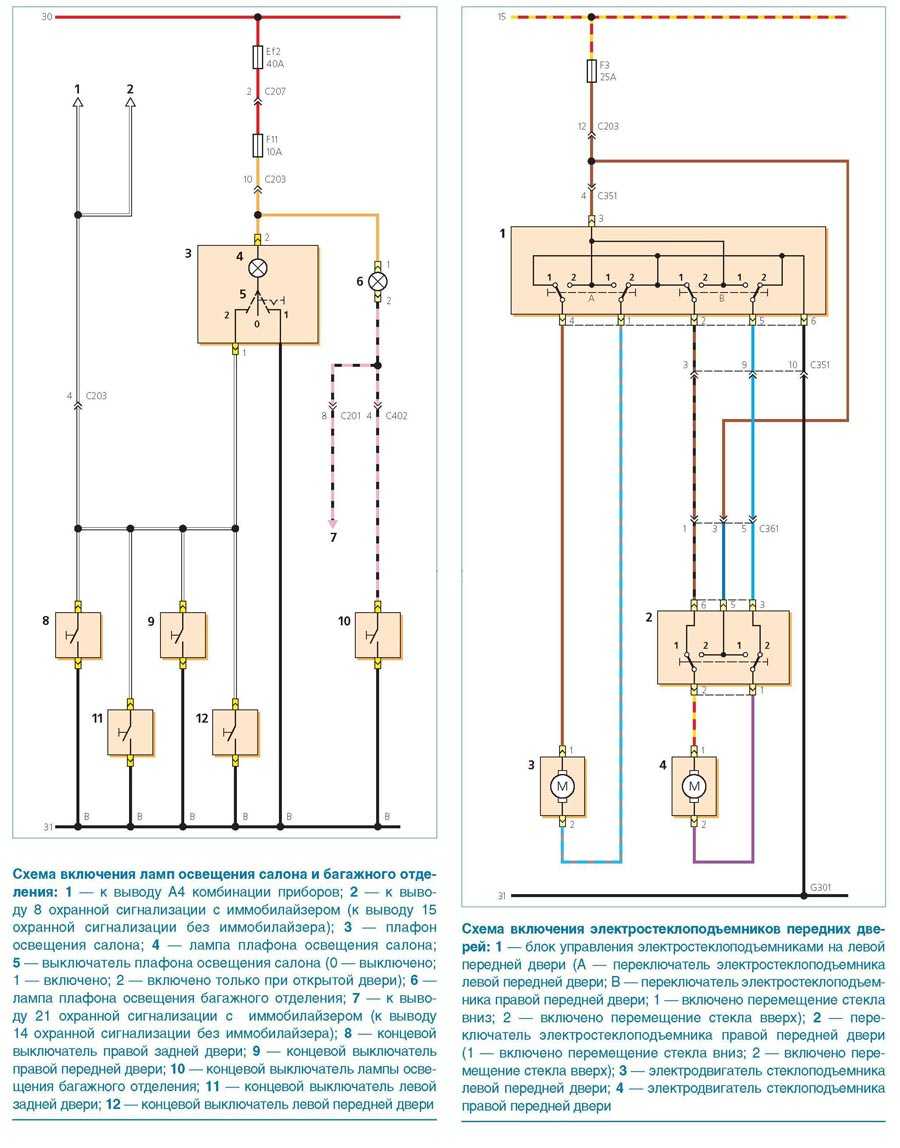 Электростеклоподъёмники передних дверей, освещение салона и багажника
