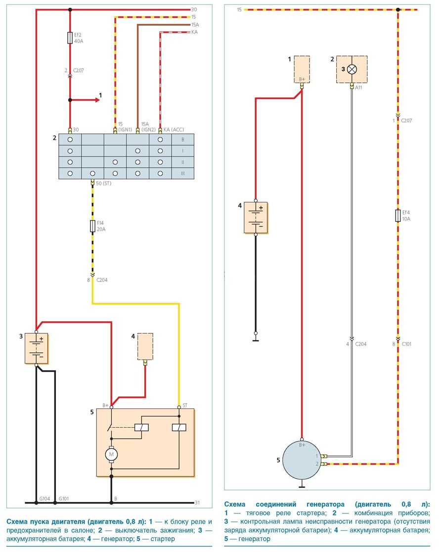 Электросхема генератора и стартера (двигатель 0,8л)