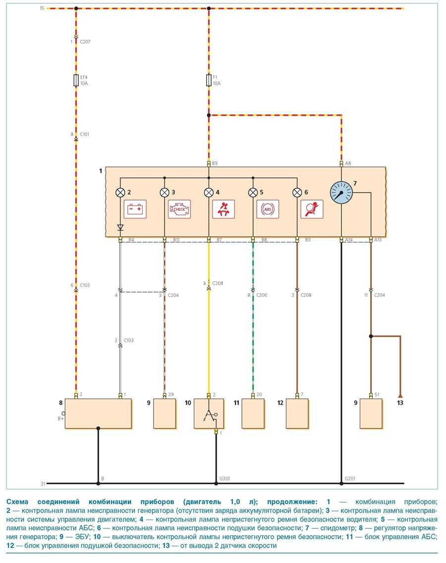 Комбинация приборов (двигатель 1,0л, окончание)