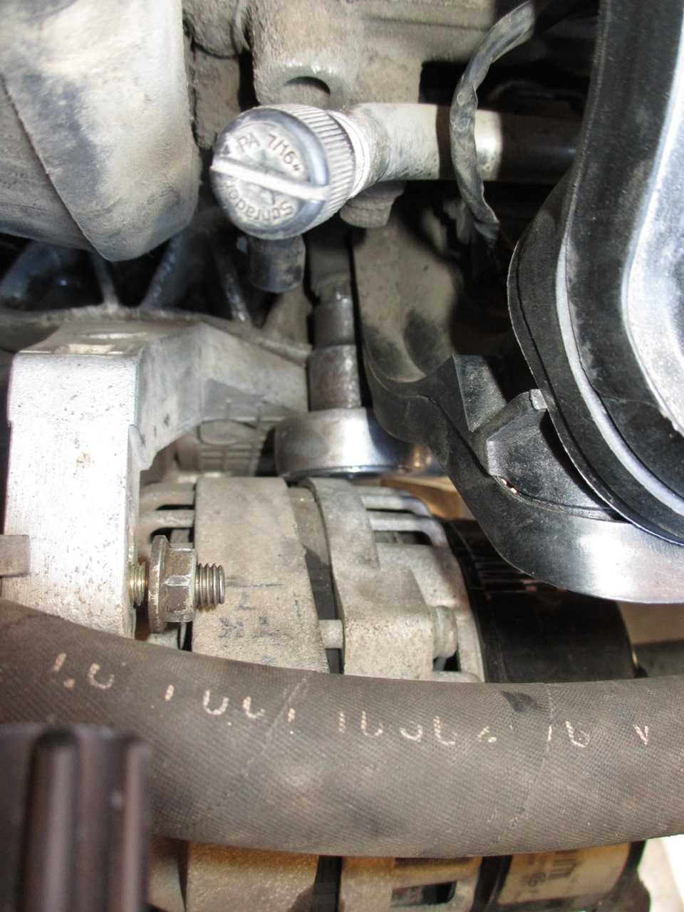 Для меня это было неожиданностью, намучившись-принял решение все собрать обратно и дома основательно под изучить подход к этой проблеме…Начитавшись немногочисленных постов в инете-сегодня предпринял попутку номер два) Снял с крепления генератор, и только после этого появился хоть какой то доступ к болту, кое как победив его принялся за остальные.