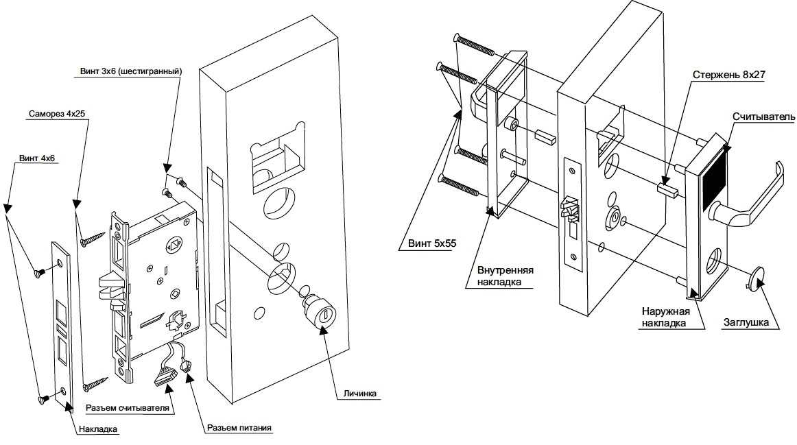 Строение практически любого дверного замка основано на наличии следующих элементов: