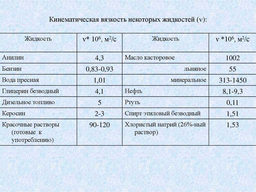 | Вещество | Вязкость 10 -5 кг/(м*с) |