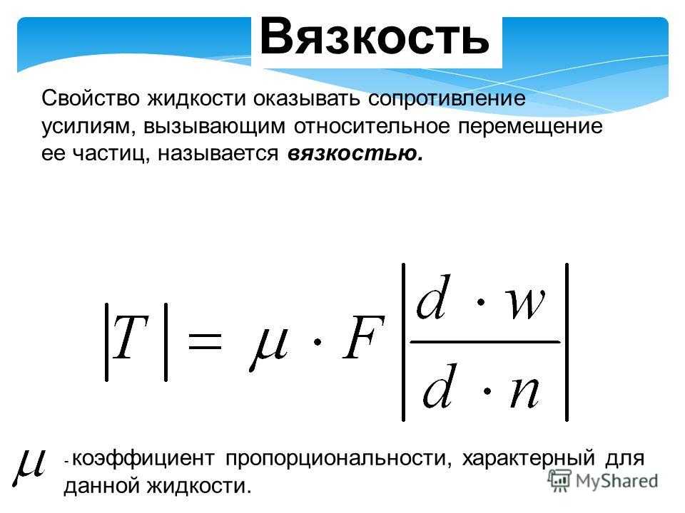 Величина μ в этом выражении является динамическим коэффициентом вязкости, равным: