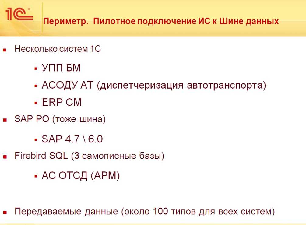 В нашем пилотном проекте заказчик специально выбрал такой интересный набор – это несколько целевых систем (в том числе не 1С):