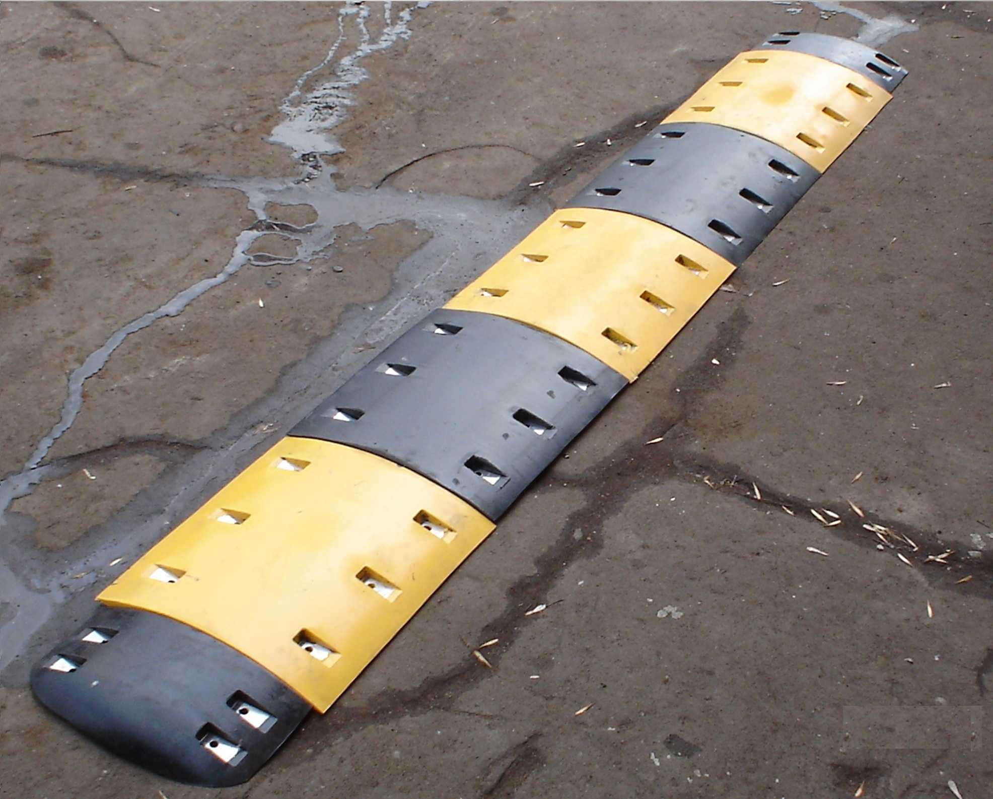Таким образом, «лежачий полицейский» может быть демонтирован в случае его ненужности, а также на зимний период времени, чтобы не мешать уборке городских улиц. Он изготовлен из резины в виде чередующихся секций. На наружную поверхность нанесен протектор в виде шашечек — для улучшения сцепных свойств с шинами автотранспорта, а для лучшей видимости в темное время суток на поверхность нанесены специальные желтые вставки из светоотражающего материала