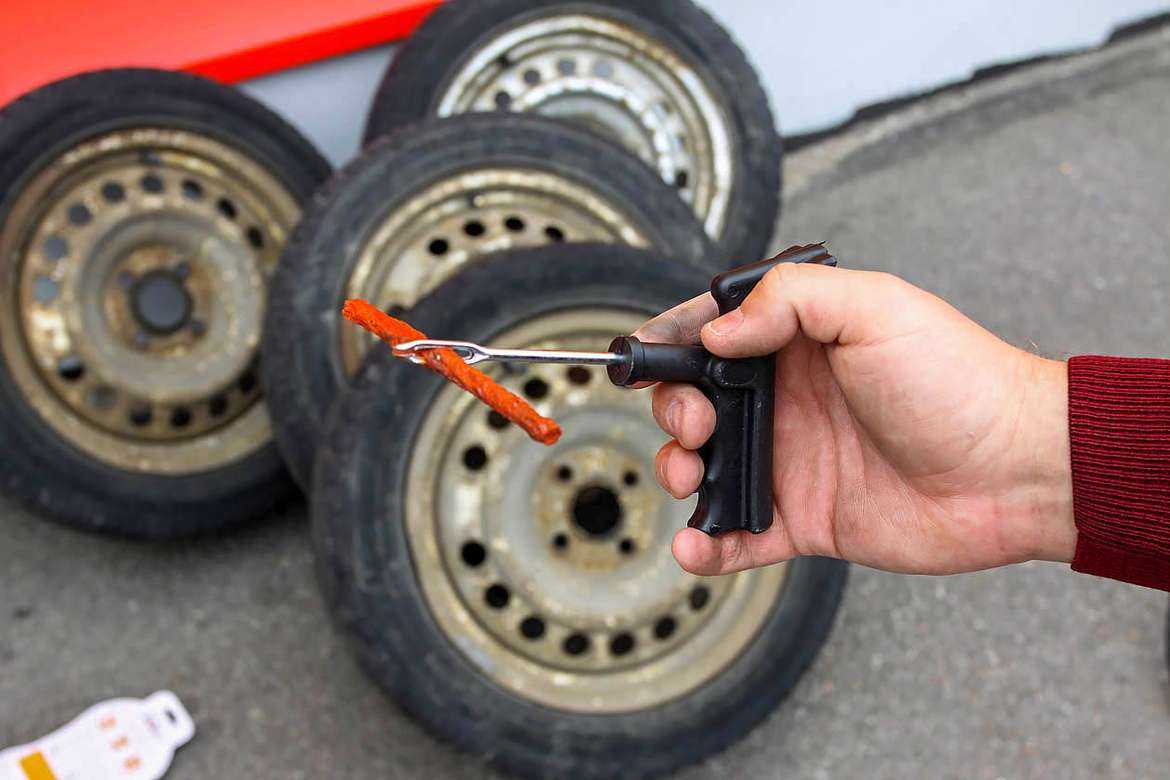 Для того чтобы заделать прокол на шине, автолюбителю в качестве вспомогательной оснастки понадобится иметь: