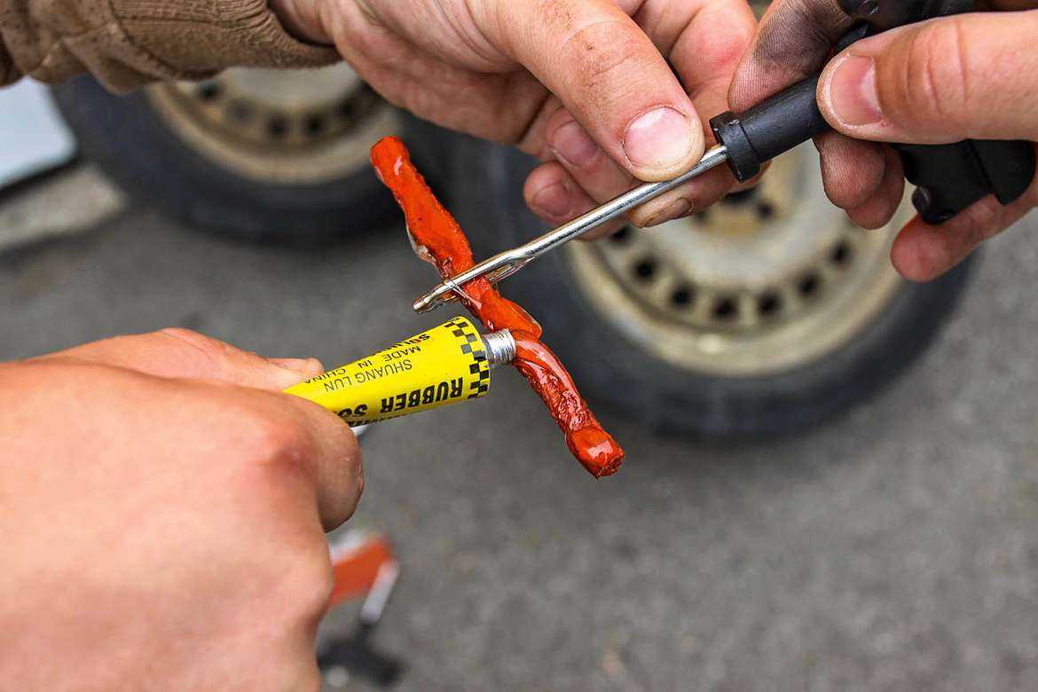 В дороге можно самостоятельно заклеить шину. Как этот делать (жгутом, герметиком или заплаткой), решать вам. Однако, если повреждение значительно, то лучше не рисковать и не подвергать себя и других участников движения опасности.