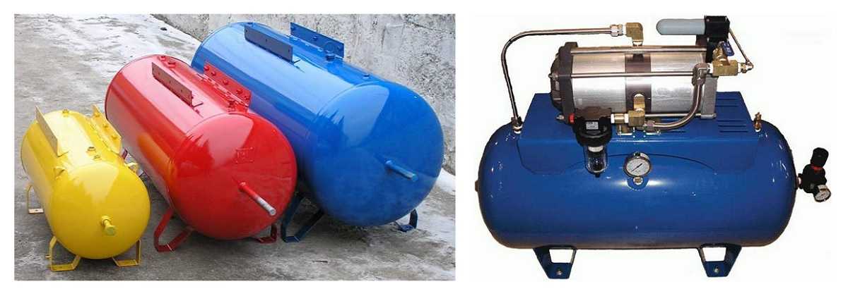 Резервуар для сжатого воздуха или газа устанавливается практически на всех моделях поршневых компрессоров. Он выполняет две функции.