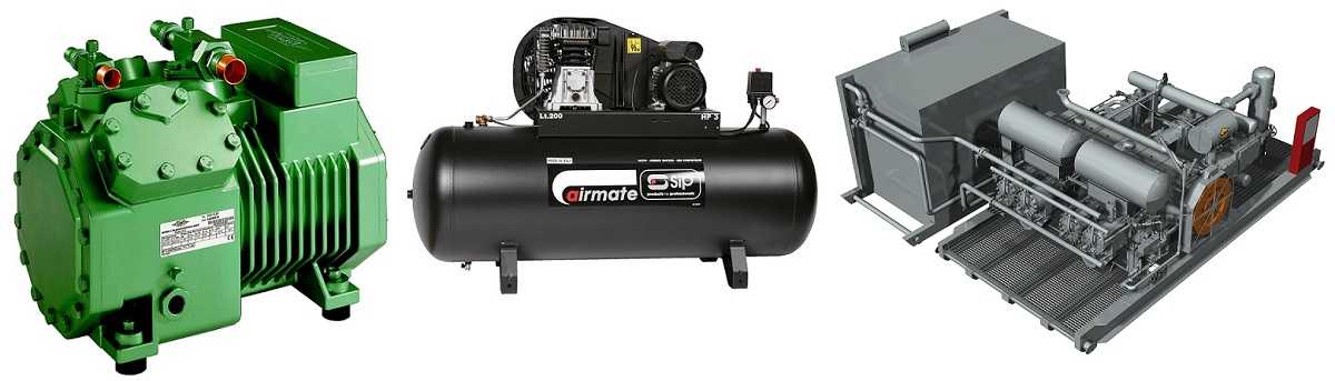 Поршневой компрессор – мощное промышленное оборудование. Сжатие воздуха в нем совершается благодаря поршню, который движется сверху вниз. Данный тип установок обычно состоит из ресивера, электропривода, компрессорной головки и прессостата, (благодаря ему происходит автоматическое регулирование давления). Такие компрессоры используются для разных целей: