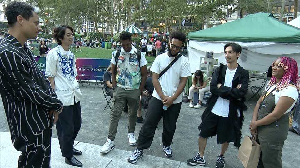 Сумино с вокалистом Хосе Джеймсом и местными музыкантами в Брайант-парке в Мидтауне, Нью-Йорк