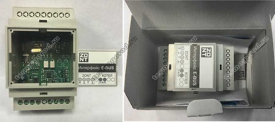 Для подключения ZONT SMART (также как и ZONT H1-V) к цифровой шине E-Bus котлов Protherm и Vaillant необходим дополнительный Адаптер E-BUS.