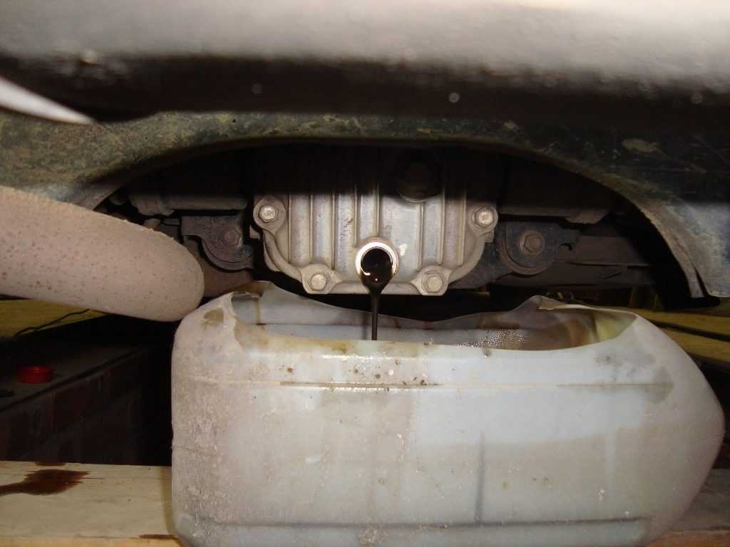 Проезжая пару километров, заезжаем в яму, подогревая при этом двигатель, после чего глушим его и начинаем откручивать сливную пробку на поддоне коробки передач;