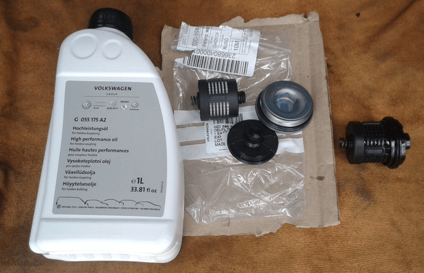 До начала этой операции следует приобрести необходимые расходные материалы. К ним относятся специальное масло для муфты haldex, а также масляный фильтр. Некоторые ремонтники и даже дилеры не рекомендуют менять фильтр. Если этого не сделать, может выйти из строя насос. Найти фильтр не сложно, его поставляет компания VAG. Артикул фирменного изделия 02D525558A. К выбору масла также следует отнестись серьёзно. Компания VAG также производит масло, номер по каталогу G055175A2, его потребуется около 1 литра.