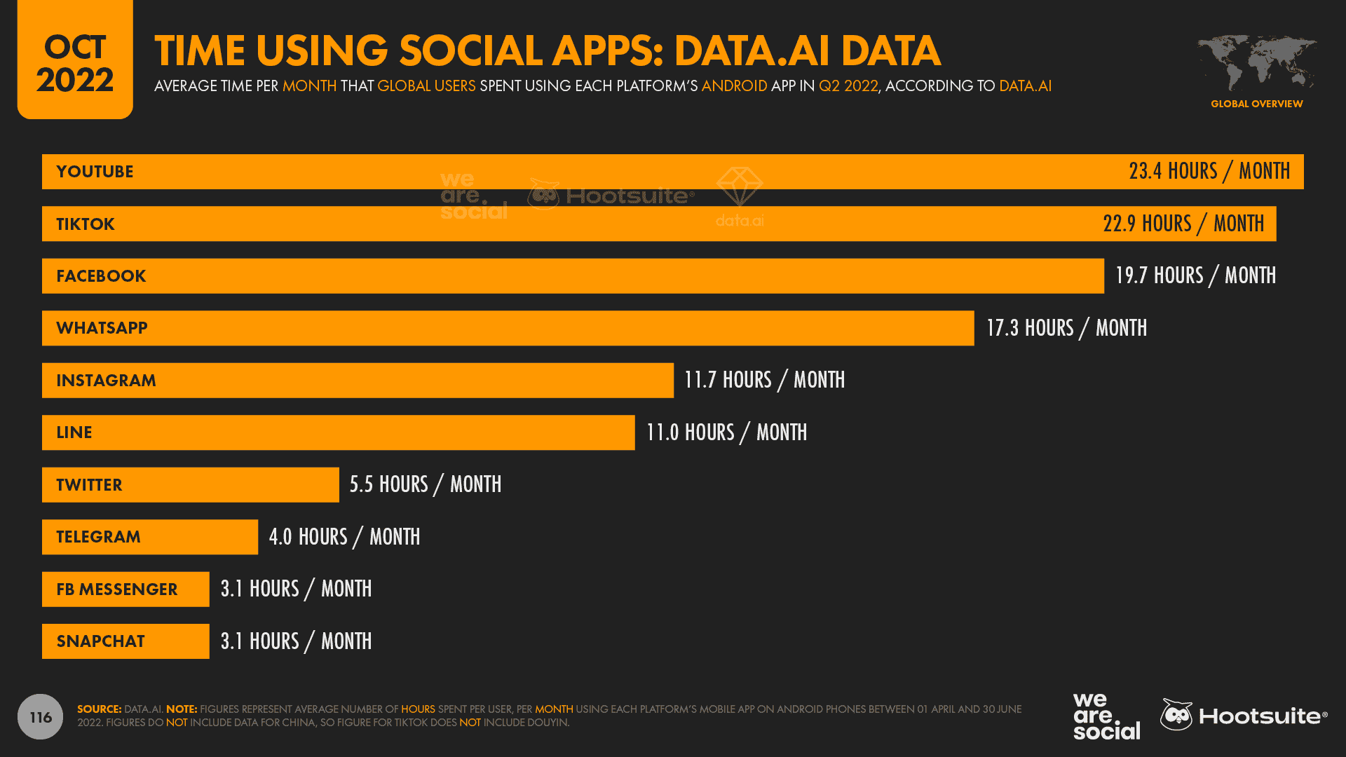 The typical user spent an average of 23.4 hours each month using YouTube’s app between 01 April and 30 June 2022, equating to almost one-and-a-half days of total waking time.