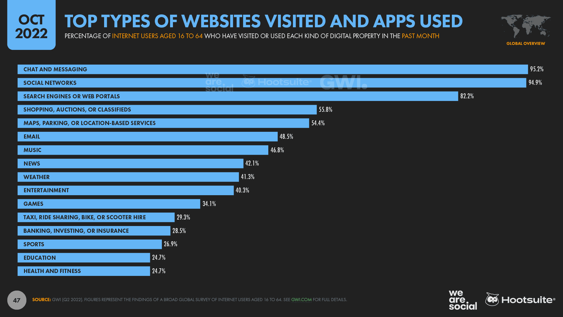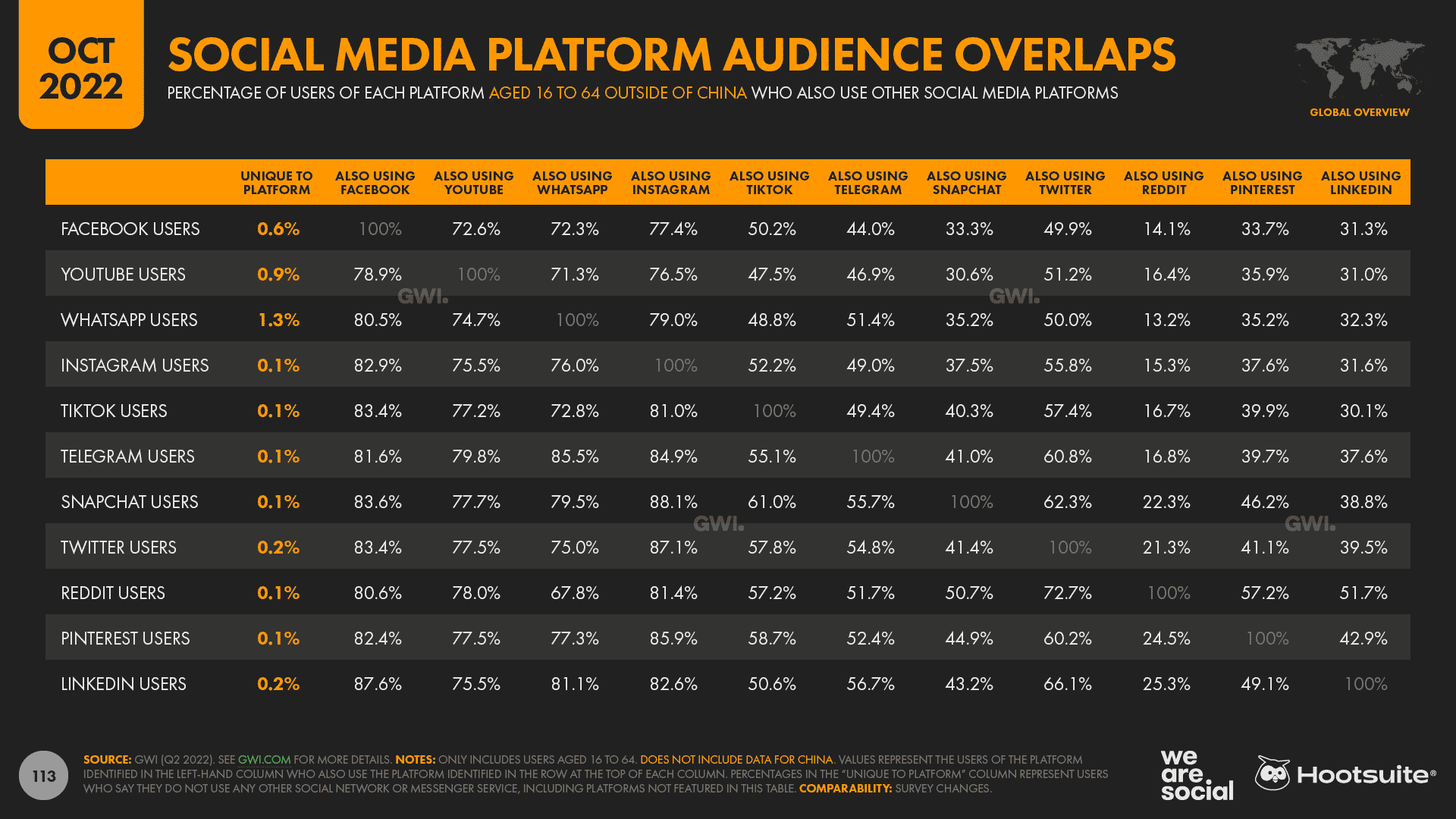 For context, 95% of working-age internet users say that they use messaging apps and social networks each month, so it’s highly unlikely that you’ll be able to reach any “unique” users on a new social platform.