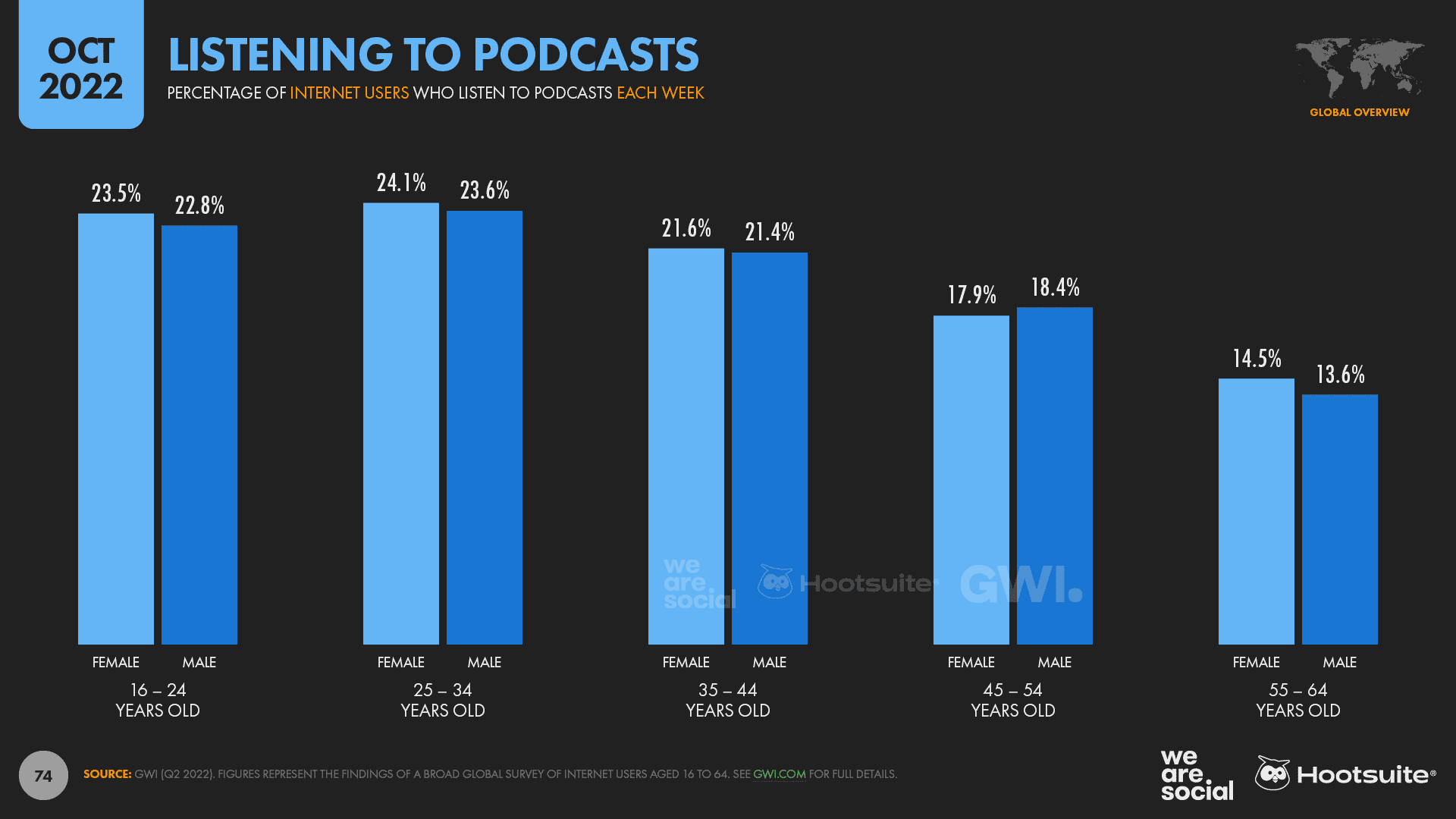 The latest data from GWI reveals that the typical working-age internet user now spends more than an hour per day listening to podcasts.