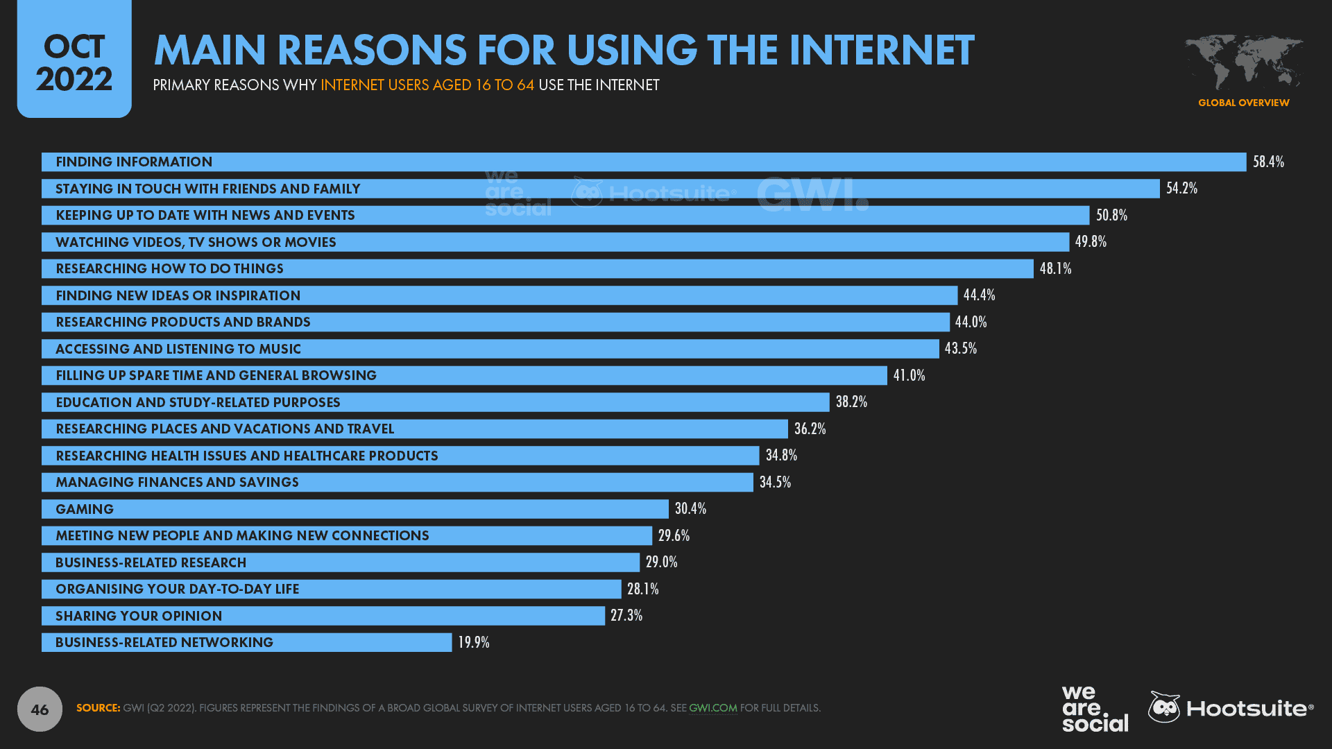 “We believe that the world has effectively reached a “saturation point” for time spent using the internet. In recent months, average daily time spent has actually decreased worldwide, across all generations, and even in internet growth markets like the Middle East and Latin America. We believe this is mostly the result of increasing mistrust in the news and rising social media-induced anxiety, especially as social media accounts for an increasingly prominent share of overall online time.”